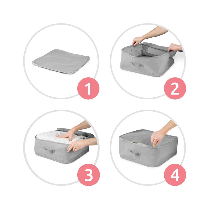 • Transportable clothing bag with handles and zipper, ideal for storing jackets, sweaters, winter jackets, sheets or duvets