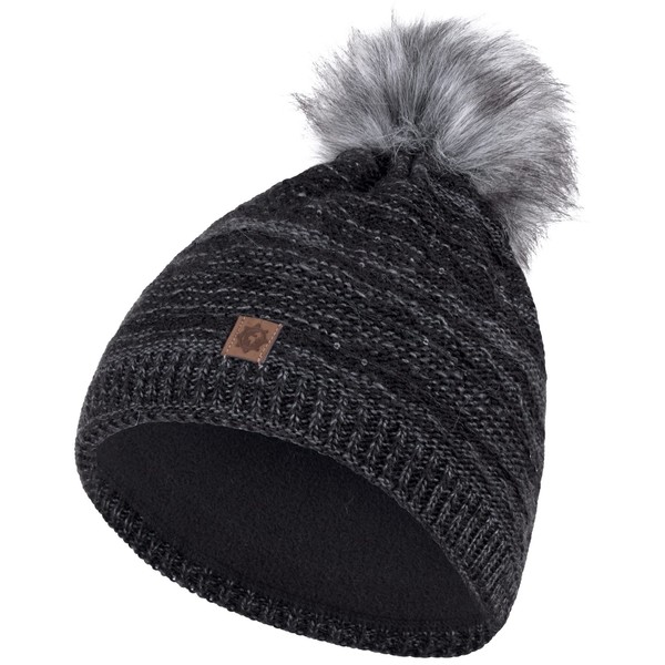 Compagno Winter Hat Knitted Hat Women's Bobble Hat Fleece Lining Beanie Hat 88, black