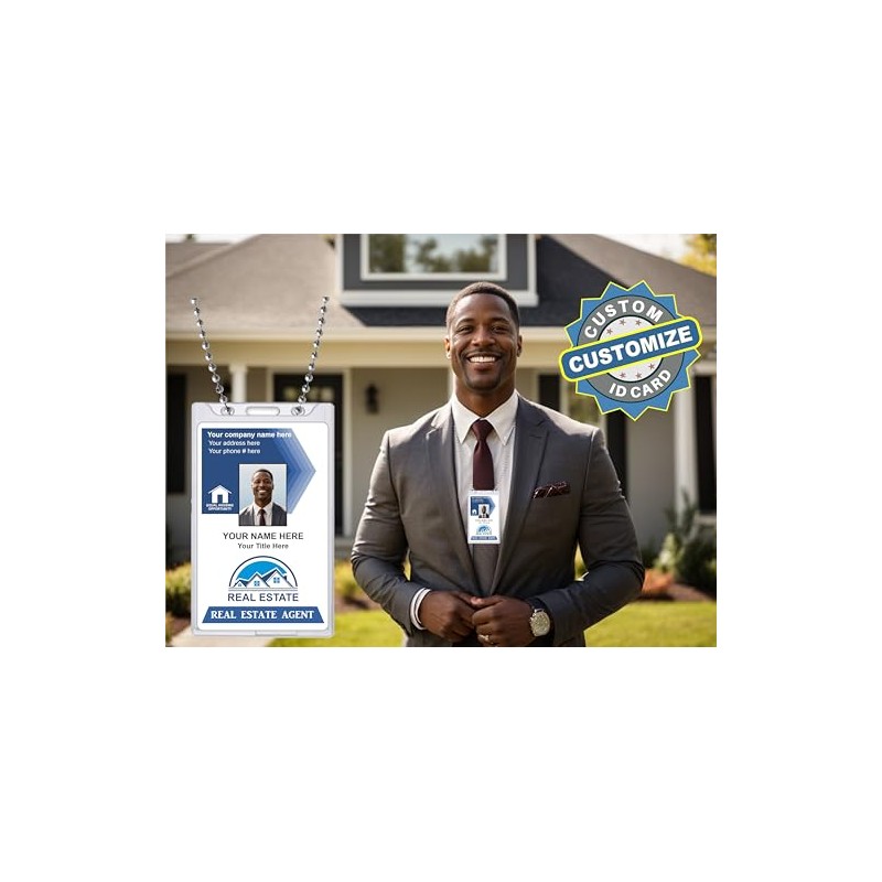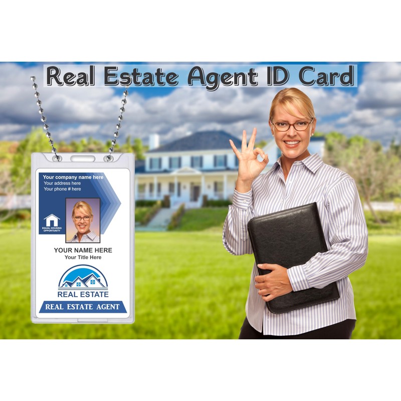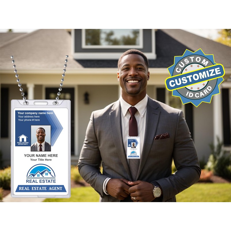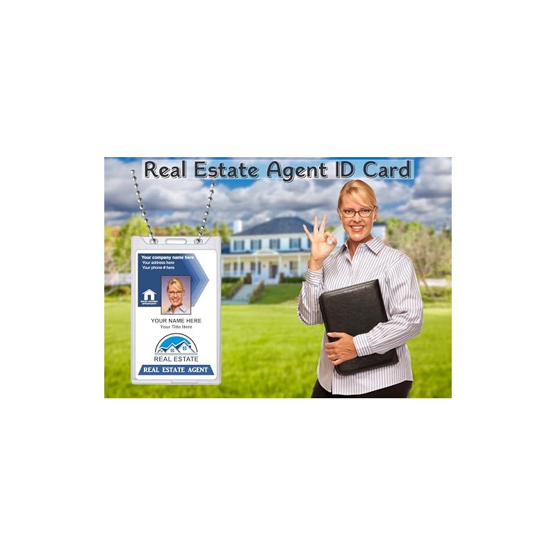 - Custom Printed REAL ESTATE Company ID Card - Click the Customize Now button to submit your Photo and Info before adding to cart.