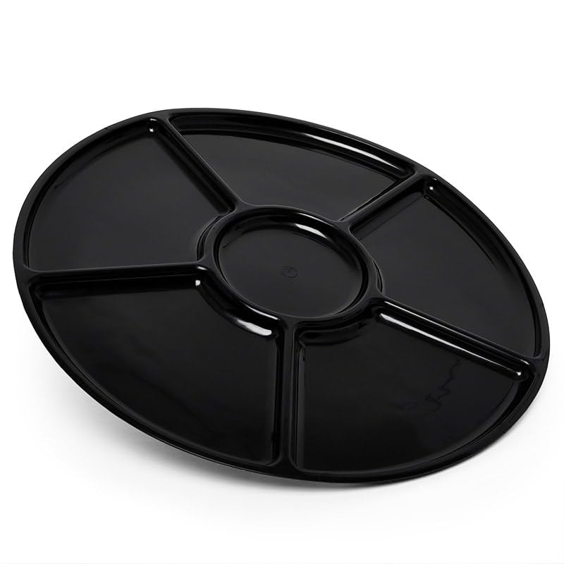 Compartmented Deli Trays (Lids Sold Separately), 16" Black 6 Compartment, Case 25 | Quantity: 25