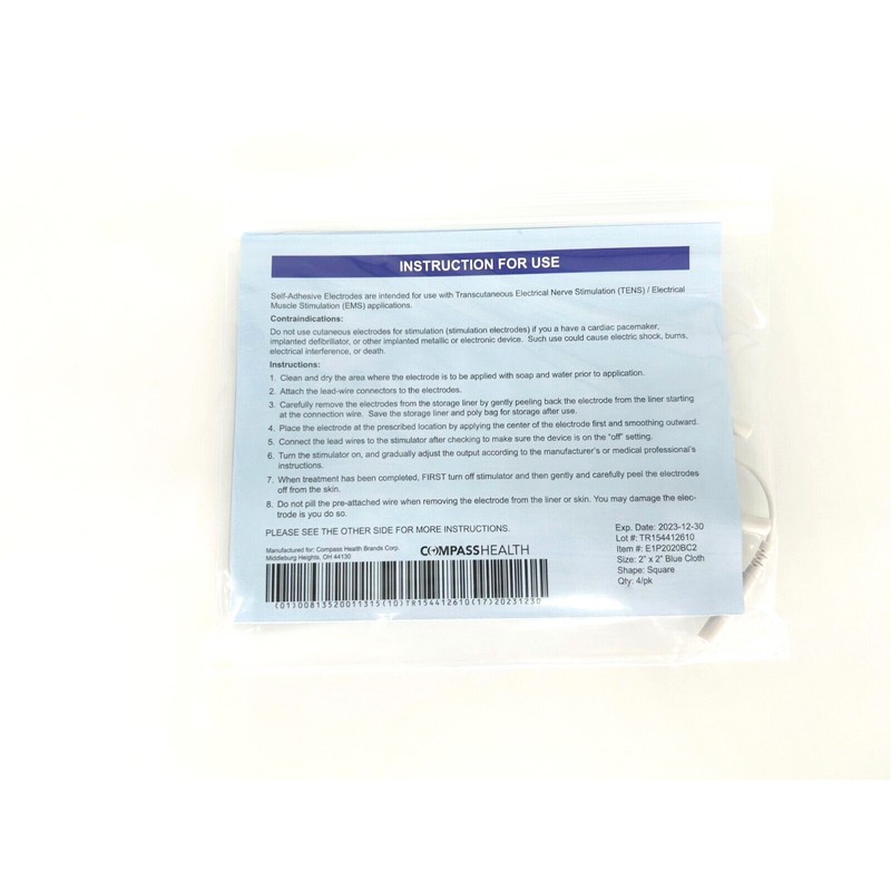 Compass Health 2"x2" Blue Cloth Self-Adhesive Electrodes Reusable TENS/EMS Pads - 12 Pack
