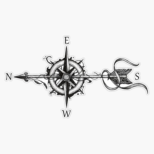 Compass With Arrow Bumper Sticker Window Vinyl Decal 5"