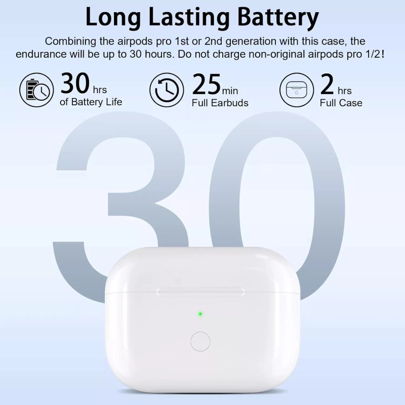 Note:This Wireless Charging Case Only Compatible for Air Pods Pro 1st & 2nd Generation It supports Type-C Charging .Bluetooth matching connection wayWith the sync button support bluetooth pairing, connects easily.Large Battery Capacity660 mAh battery capacity supply over 5 times full charge for your Air Pods Pro 1st & 2nd GenerationTwo charging wayWireless and wired charging solve your charging problem you don't have a wireless charger, don't worry about it. You can charge it with a cable at any is very convenient for you.Quick chargejust 15 minutes give you 3 hours of listening time.Bluetooth Pairing with 1. First, activate Bluetooth setting on the in 'Settings-Bluetooth-On'in order to make charging case search Air Pods Pro automatically. (Don't plug in charger during Bluetooth pairing process)2. Put the original Air Pods Pro into charging case and turn on the lid,then long press the sync button until the green flashing.3. Please wait and do not switch the lid on and off repeatedly when the is pairing with Air Pods Pro.4. When the pop-up window shows "Air Pods Pro" or the name you set for your Air Pods Pro, click "Connecting" and wait for the process to complete,then click the sync button on the charging case to stop the flashing lightor wait for it to automatically the i Pops up 'Not Your "Air Pods Pro" when open the lid, please activate the charging case in pairing mode and click "Via iCloud Connecting", or ignore this and wait for the "Air Pods Pro" pop up window to appear for Bluetooth pairing.5. Reopen the lid again and wait for 2s, when the is connected with the Air Pods Pro, take out and wear them.Package include:1×Wireless Air Pods Pro 1st & 2nd Generation Charging Case1×operation instructionnot include Heads