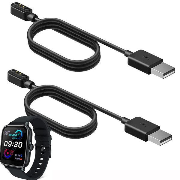 Compatible for Allaugh Smartwatch Charger, 2 Pin Magnetic USB Replacement Charging Compatible with Laret/WZWNEER/DXPICR/Wwzzey/MVEFOIT/Allaugh Y20GTA/Y20GT Smart Watch 1.7" (2 pack-Black+Black)