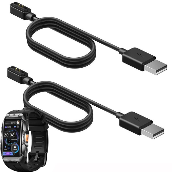 Compatible for KOSPET Tank X1 Charger, Blueshaweu 2 Pin Magnetic USB Replacement Charging Compatible with KOSPET Tank X1 1.47" Smart Watch/AMAZTIM TANK X1 1.47 Inch Fitness Tracker (Black+Black)