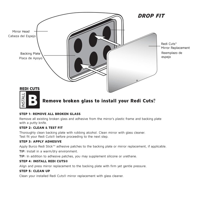Burco Replacement Automotive Mirror Glass is quite easy to install and the - mirror silhouette and complete instructions are printed on the back of the box.