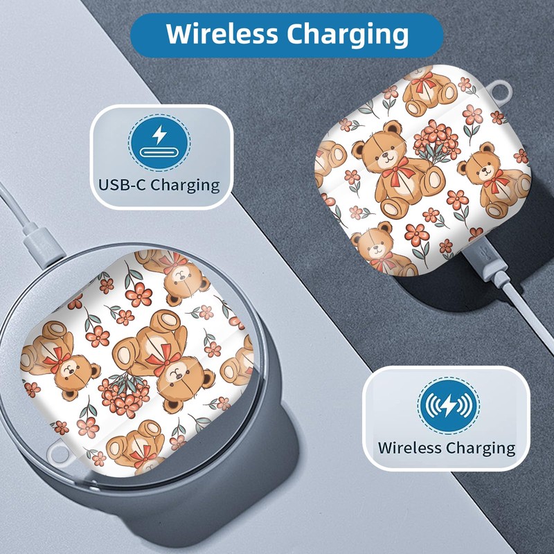 Compatible with AirPod 4 Protective case with Gold Key Ring for 2024 Fourth Generation AirPod. Shockproof, dustproof, Wireless Headphone Protective case.(Baby Bear)