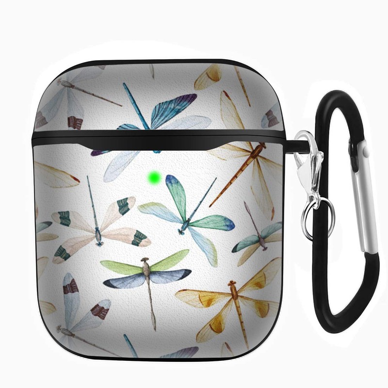 Compatible with AirPods 1st 2nd Generation Charging Case, Soft Patterned Leather Shockproof Protective Cover Case (Dragonfly Pattern)