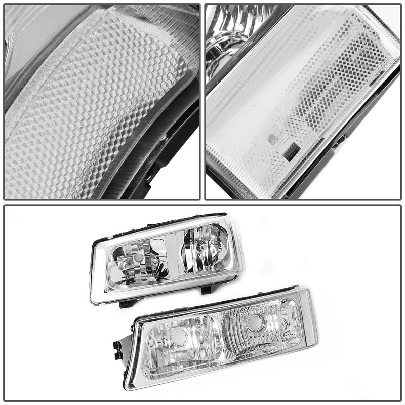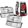 Compatible with Chevy Silverado 1st Gen 4pc Pair of Chrome Clear Corner Headlight + Black Clear Lens 3D LED Tail Light