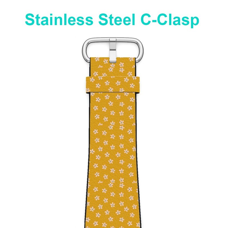 Compatible with Garmin Fenix 7/7 Pro, Fenix 6/6 Pro, Fenix 5/5 Plus, Epix (Gen2) / Epix Pro (Gen2), 22mm, Replacement Leather Watch Band (Mustard Floral Ditsy Blender) Smartwatch Strap Bracelet