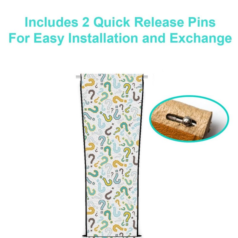 Compatible with Garmin Forerunner 255/255 Music, 265, 745, Venu 2, Venu 3, Vivoactive 4, 22mm Replacement Leather Watch Band (Quiz Question Marks) Smartwatch Strap Bracelet