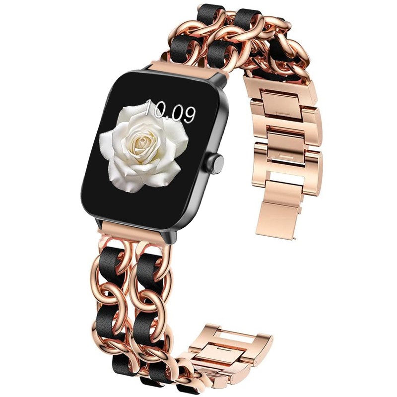 Compatible with ID208 Plus, IDW13, IDW16, IDW17, IDW19, IDW20, IDW21, IDW23, IDW25, IDW26, IDW28 Smartwatch bands, 22mm Jewelry Chain Metal Wristband with Leather Compatible with Quican ID208 Plus 1.8