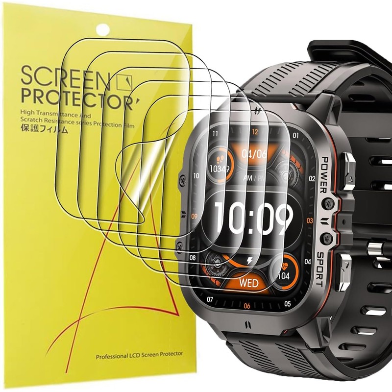 Compatible with LIGE C26 Smartwatch Screen Protector, Sahouden Full Coverage TPU Clear Film Compatible for LIGE C26/AVUMDA C26 Smartwatch/OUKITEL BT20 Smartwatch-1.96 Inches (TPU-6 Pack)
