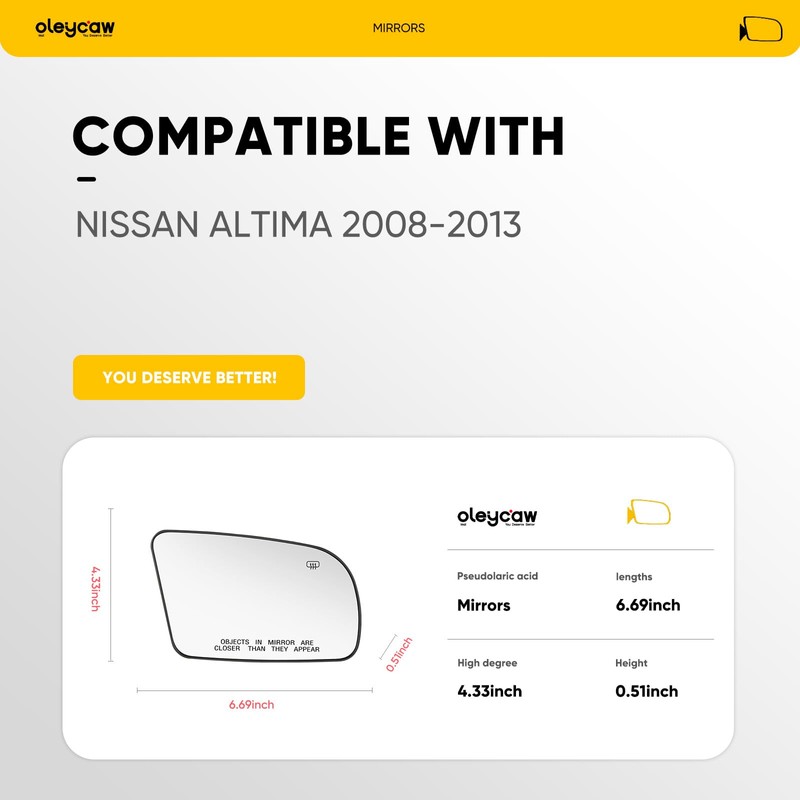 - Rapid Heating: Mirror for nissan altima passenger side with power heated, fast defogging and defrosting