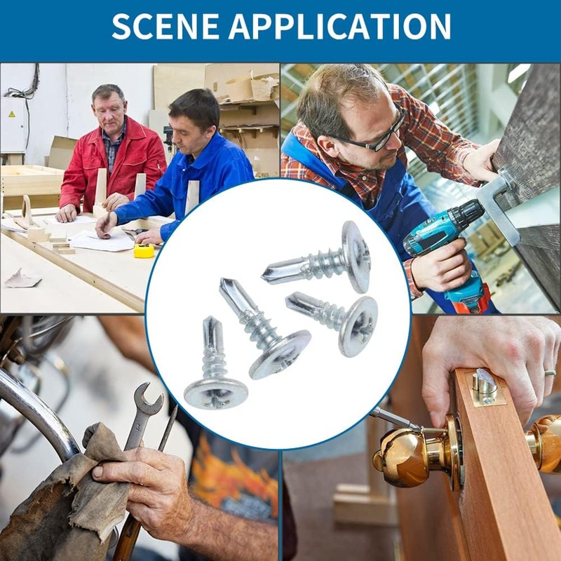 - Material: self-drilling screws are made of high-quality iron, with galvanised surface, high hardness, no rust, corrosion resistance and can be used for a long time.