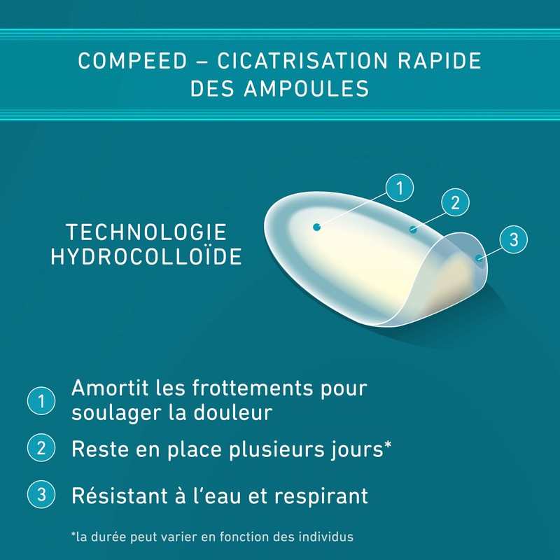 - INSTANT PAIN RELIEF - Compeed anti-blister bandages instantly relieve pain on applied areas. The padding effect relieves pressure on the vial (anti-chafing dressing).