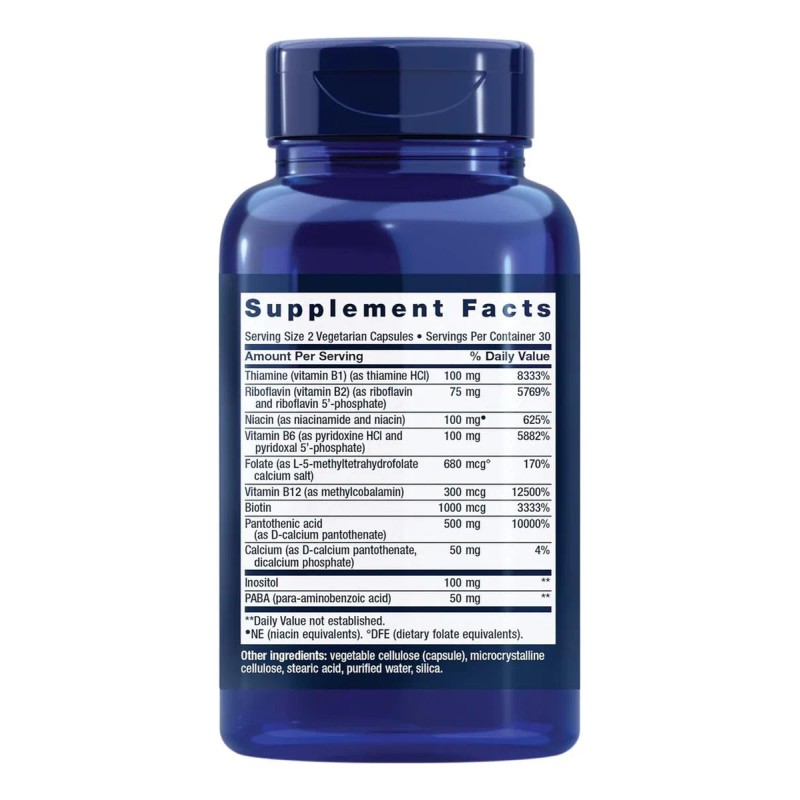 Descubre una fórmula cuidadosamente diseñada con vitaminas del complejo B en formas bioactivas que puedes integrar fácilmente en tu rutina diaria. Cada porción de Complete B Complex de Life Extension proporciona una mezcla sinérgica de tiamina, riboflavina, niacina, vitamina B6, ácido fólico en forma de metiltetrahidrofolato, vitamina B12 como metilcobalamina, biotina, ácido pantoténico, inositol, PABA y calcio, todos seleccionados por su papel clave en múltiples funciones del organismo. Este suplemento ha sido elaborado para brindar apoyo al metabolismo energético, lo que lo convierte en una excelente opción para quienes desean sentirse con mayor vitalidad y energía durante todo el día. Su combinación activa puede contribuir a mejorar el rendimiento físico y apoyar la claridad mental, lo que lo hace ideal para mantener la concentración y un enfoque mental más agudo. También puede ofrecer soporte al sistema nervioso, contribuyendo a la regulación del equilibrio emocional en contextos de alta exigencia o estrés.