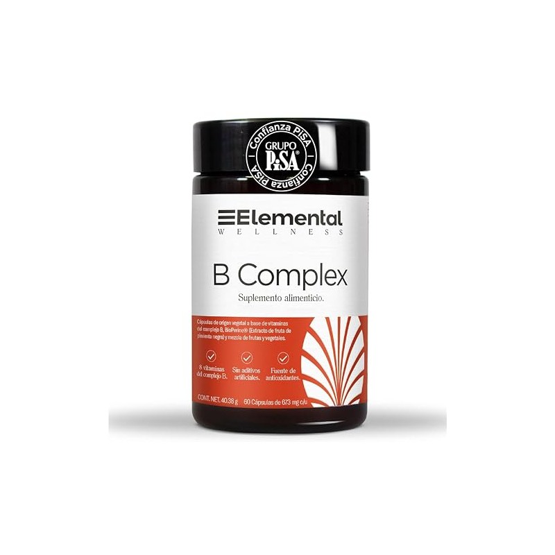 Acerca de este artículo TODAS LAS VITAMINAS DEL COMPLEJO B: Combinamos las vitamina b B1, B2, B3, B5, B6, B7, B9 y vitamina B12 proporcionando un soporte integral para el metabolismo energético, la salud del sistema nervioso y la función cognitiva. BIOPERINA: Enriquecido con BioPerine, un extracto patentado de pimienta negra, que mejora la biodisponibilidad de los nutrientes para una absorción óptima. BioPerine es el único producto de piperina respaldado por estudios científicos que garantizan su eficacia y seguridad. Es la única fuente de pimienta negra que ha sido sometida a estudios clínicos en los Estados Unidos, corroborando su seguridad y eficacia para uso nutricional. MEZCLA DE FRUTAS Y VERDURAS: Este complejo B para mujeres y hombres contiene una mezcla de frutas y verduras, proporcionan compuestos importantes como vitaminas, minerales, antioxidantes y fibra de frutas y verduras como limón, guayaba, manzana, arándano rojo, frambuesa, fresa, jitomate, albahaca, espinaca, zanahoria, betabel, brócoli y uva. CÓMO USARLO: Solo toma una cápsula diaria para obtener todos los beneficios de nuestro complejo vitamínico B. Cada frasco contiene 60 cápsulas veganas, suficientes para un suministro de 2 meses, haciendo que sea una excelente adición a tu rutina diaria. SUPLEMENTO ALIMENTICIO DE CALIDAD: El Complejo B Elemental es 100% libre de gluten y alérgenos, sin aditivos artificiales, sin azúcares añadidos, sin sabores ni edulcorantes. Apto para veganos, formulado para ofrecerte lo mejor en suplementación nutricional.