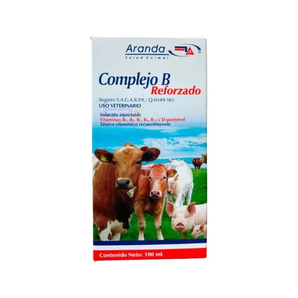 El Complejo B Reforzado es la solución ideal para apoyar la salud y el rendimiento de tus animales. Su fórmula versátil y efectiva garantiza bienestar en diversas especies. Asegúrate de usarlo bajo indicación veterinaria para obtener los mejores resultados.