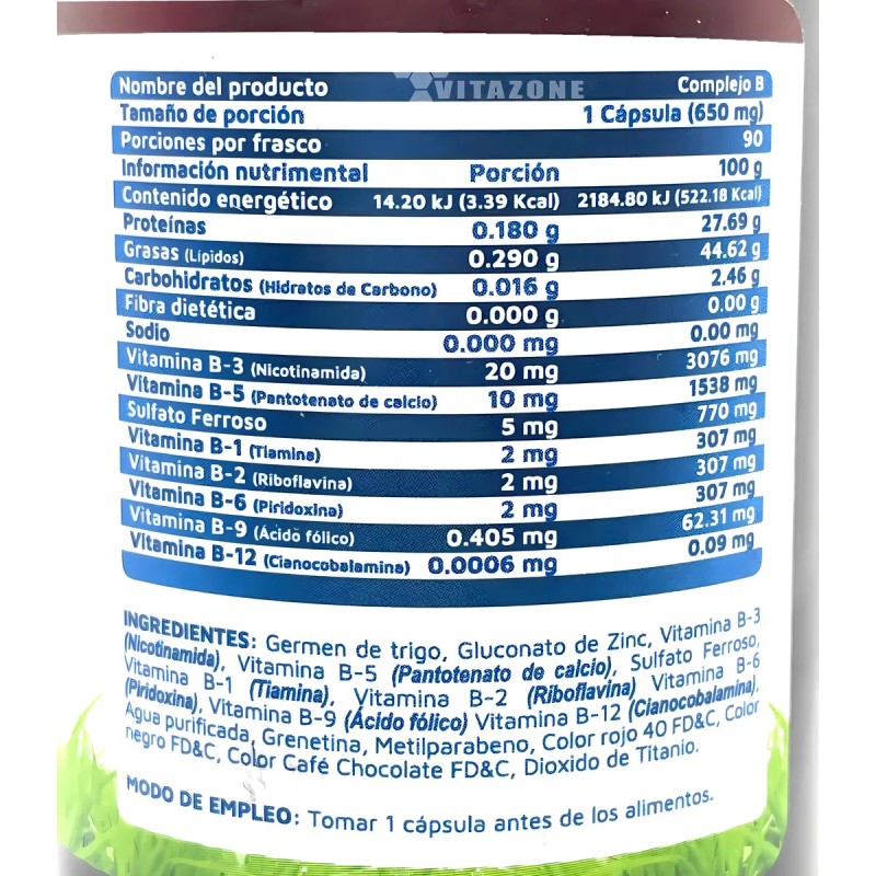 Descubre el Complejo B Vidanat, un suplemento nutricional diseñado para apoyar tu bienestar diario. Cada frasco contiene 90 cápsulas, lo que suma un total de 180 cápsulas en esta oferta de 2 frascos. Este producto es ideal para adultos a partir de 18 años y es completamente libre de gluten, lo que lo convierte en una opción segura para quienes siguen dietas específicas. Además, no contiene lactosa, lo que lo hace apto para personas con intolerancias. Su formato en cápsula facilita la ingesta diaria, recomendándose una cápsula al día. Recuerda que este producto no es un medicamento, y su uso es responsabilidad de quien lo consume y de quien lo recomienda. Consulta la tabla nutricional para conocer el contenido específico de cada vitamina y aprovecha los beneficios del Complejo B para mantener tu energía y vitalidad.