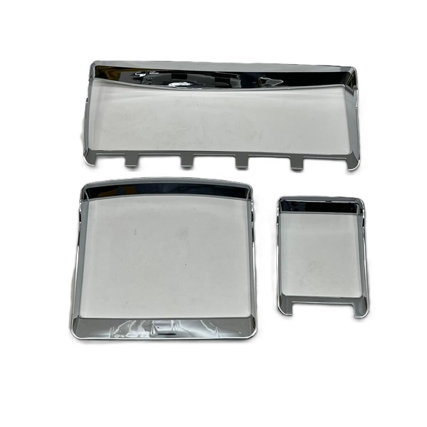 - Complete Left, Speed/Tach, and Right Chrome Plastic Trim Kit.