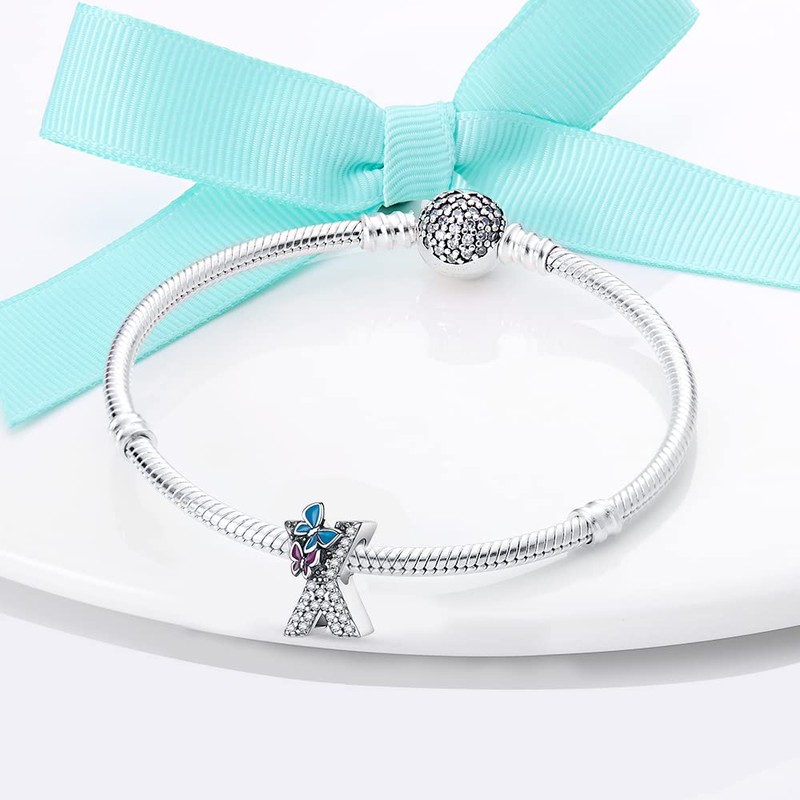 Complete A~Z Alphabet Charm Letter Beads Solid 925 Sterling Silver with Cubic Stones Flower Butterfly fits European Bracelets Necklace Women Jewelry Gift Options