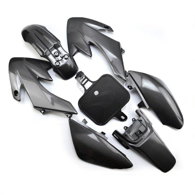 Complete Carbon Fiber Style Plastic Fender Fairings Kit for Pocket Pit Dirt Bikes Compatible with CRF50 XR50 CRF XR