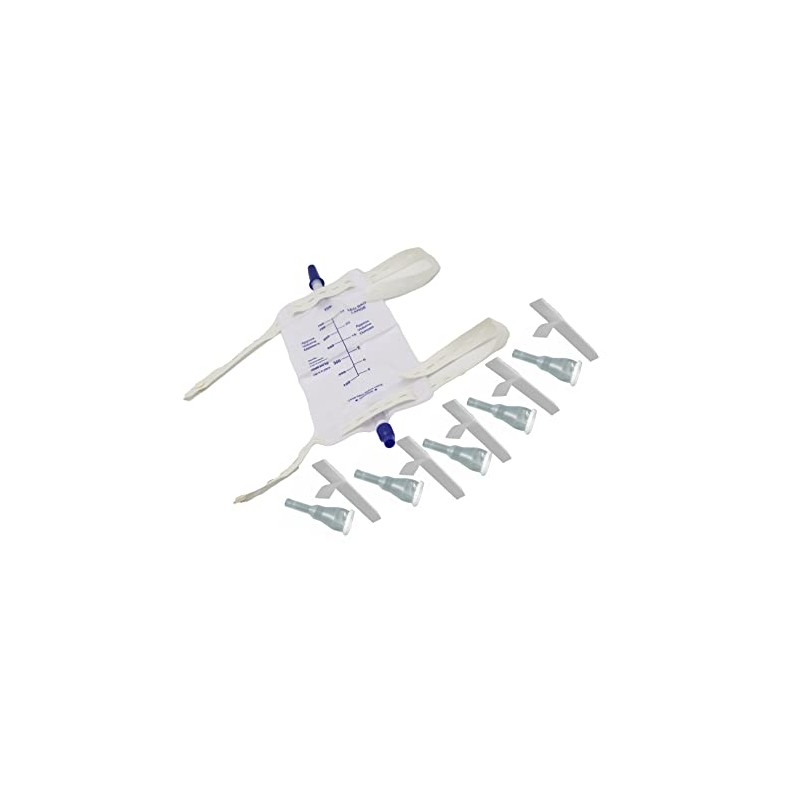Complete Kit Urinary 5 Days 5 Condom Catheters External Self-Sea + Leg Bag 750ml + Straps (Large 30 mm 1.2 Inches)