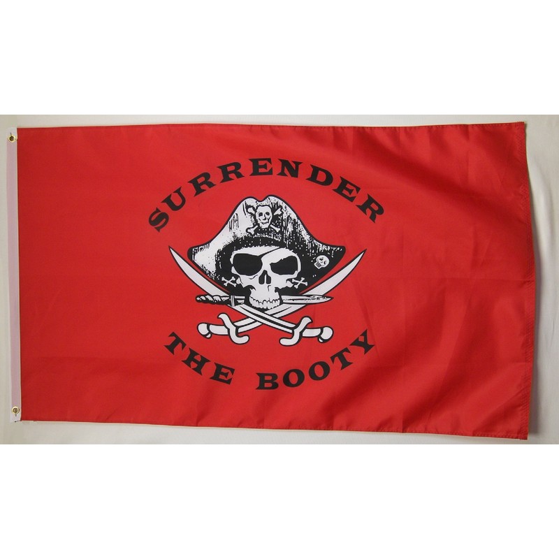 Complete Steel Powered Coated Flag Pole With Hardware & 3' X 5' Surrender The Booty Pirate Flag