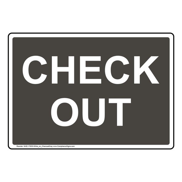 ComplianceSigns.com Check Out Sign, 10x7 inch Plastic for Wayfinding