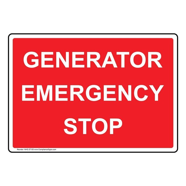 ComplianceSigns.com Generator Emergency Stop Sign, 10x7 inch Plastic for Electrical, Made in USA