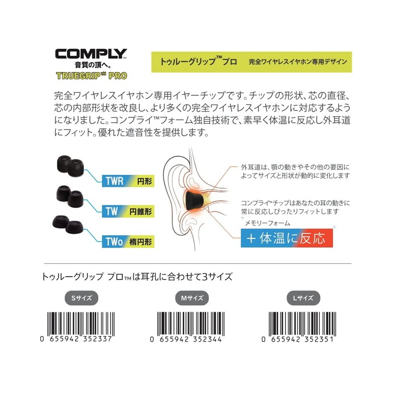 Comply TW-200-A HC350-21502-01 Ear Tips, Size M, 1 Pair, Sound Insulation, Fit/Fall Prevention, M Size