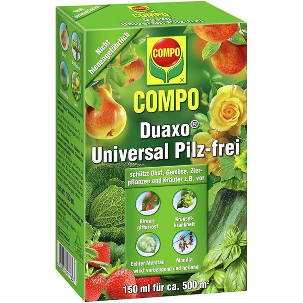 - Box contents: 1 Compo Duaxo universal mushroom-free, concentrate including measuring cup, 150 ml, item no. 17785