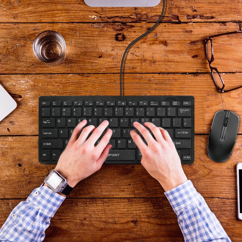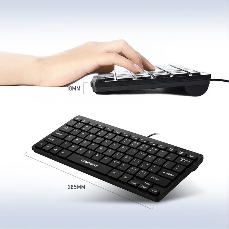 • MODERN AND COMFORTABLE DESIGN: Compoint design creates ultra-slim quiet black fancy wired keyboard with USB for maximum ergonomic using and traveling. The neat mini keyboard is suitable for all applications.