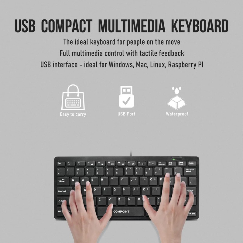 • WIDE COMPATIBILITY: Compoint small wired keyboard is great for working and gaming on Mac, Computer, Laptop. Working and compatible with Windows 7, 8, 2000, Me, XP, Vista, TV, Android etc.