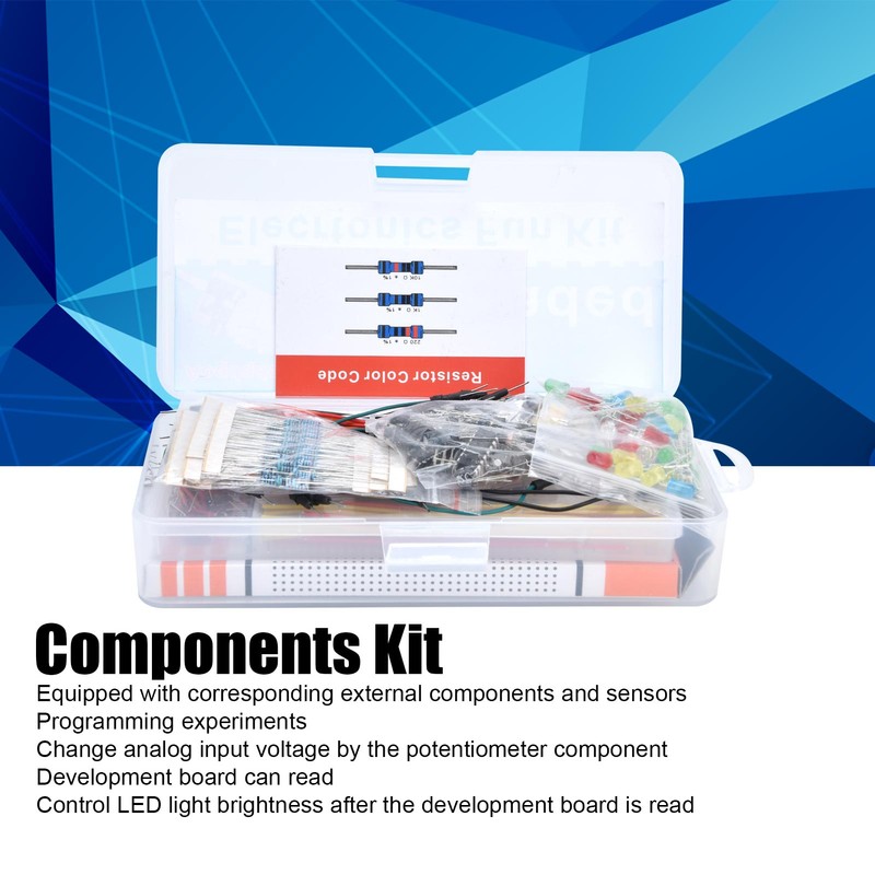 1、Equipped with corresponding external components and sensors for programming experiments 2、The analog input voltage is changed by the potentiometer component, so that the development board can read 3、The brightness of the LED light is controlled after the development board is read, very practical 4、Basic starter kit suitable for beginners to learn programming, can assist in learning all the resources of the for R3 development board 5、This components kit come with stable structure, excellent performance and long service life