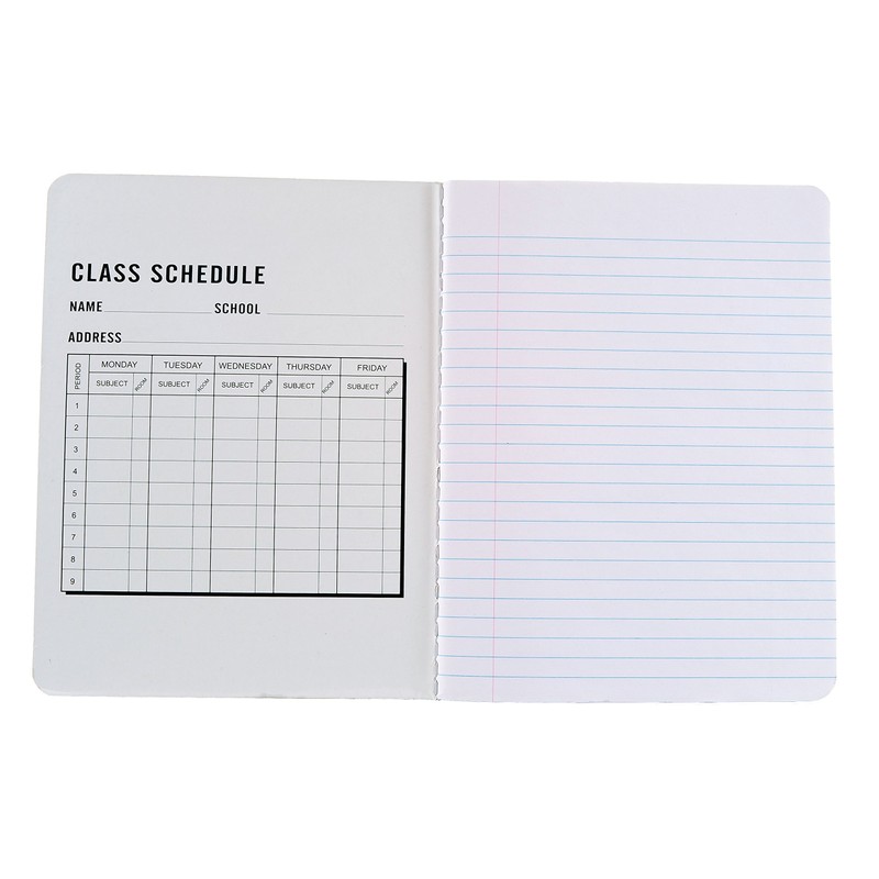 INFORMATION YOU NEED: Class schedule on the inside cover - multiplication table and conversion table rules on the inside back cover. Great for students in elementary school, middle school, and high school.