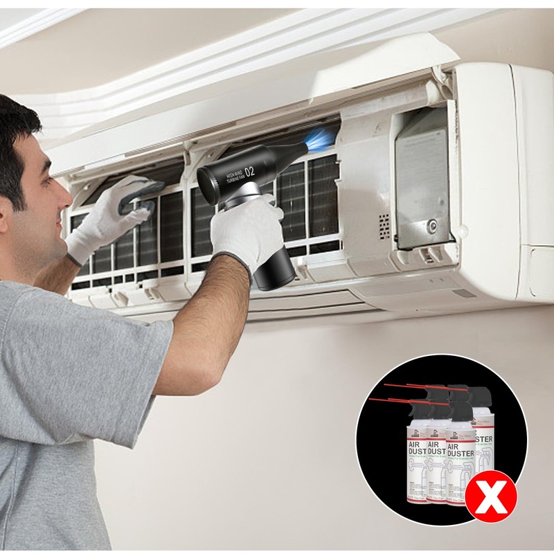 - 【High-Speed Compressed air Duster】This compressed air duster features a high-speed brushless motor with a maximum RPM of 110,000,delivering a top wind speed of 45m/s and a powerful wind force of up to 5OZ.Its strong and high performance effortlessly deals with surface dust,rain,and snow.