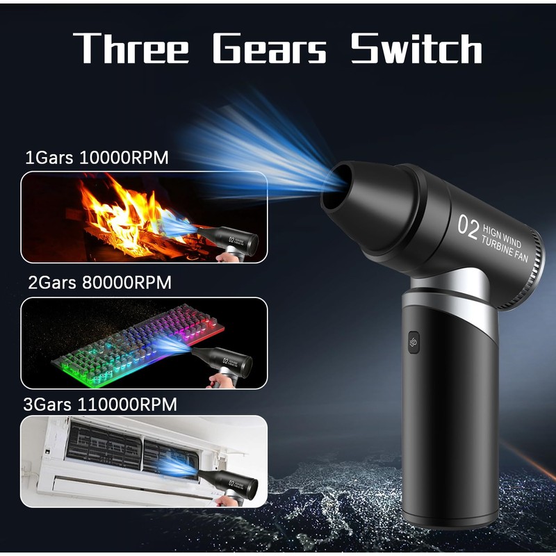Compressed Air Duster,110000RPM Jet Dryer Blower,3 Gear Portable Electric Air Duster with Blow/Exhaust Mode for Car Dry,Keyboard Cleaning,Air Conditioning Cleaning,Camping, Air Bed, and BBQ
