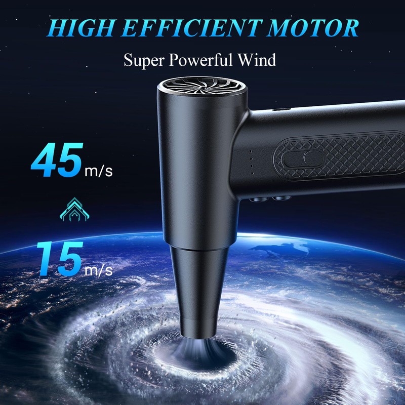 - Advanced Brushless Motor Design: Compressed air dusters come with the most advanced brushless motor, which is more cost but higher quality. This Electric Air Duster has a maximum speed of 100000 RPM motor with Stepless adjustable airflow settings, the maximum wind speed reaches to 42 m/s, equivalent to a category 3 hurricane. Allows you to customize the airflow for different cleaning needs.