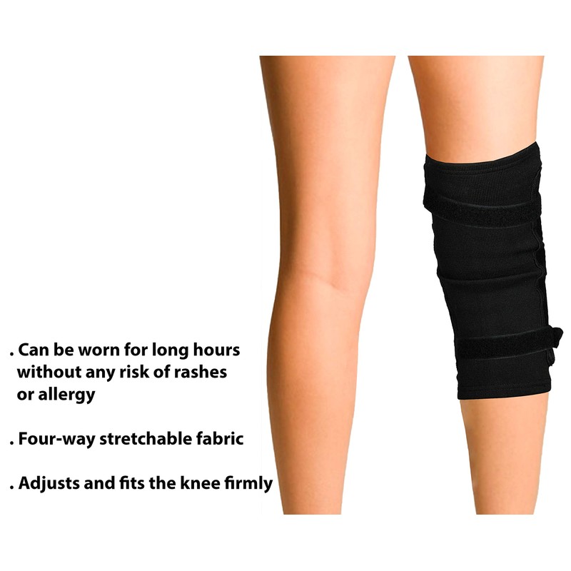 - Simple pull on application, non-surgical management of injured knee; post-surgical rehabilitative support to the healing knee