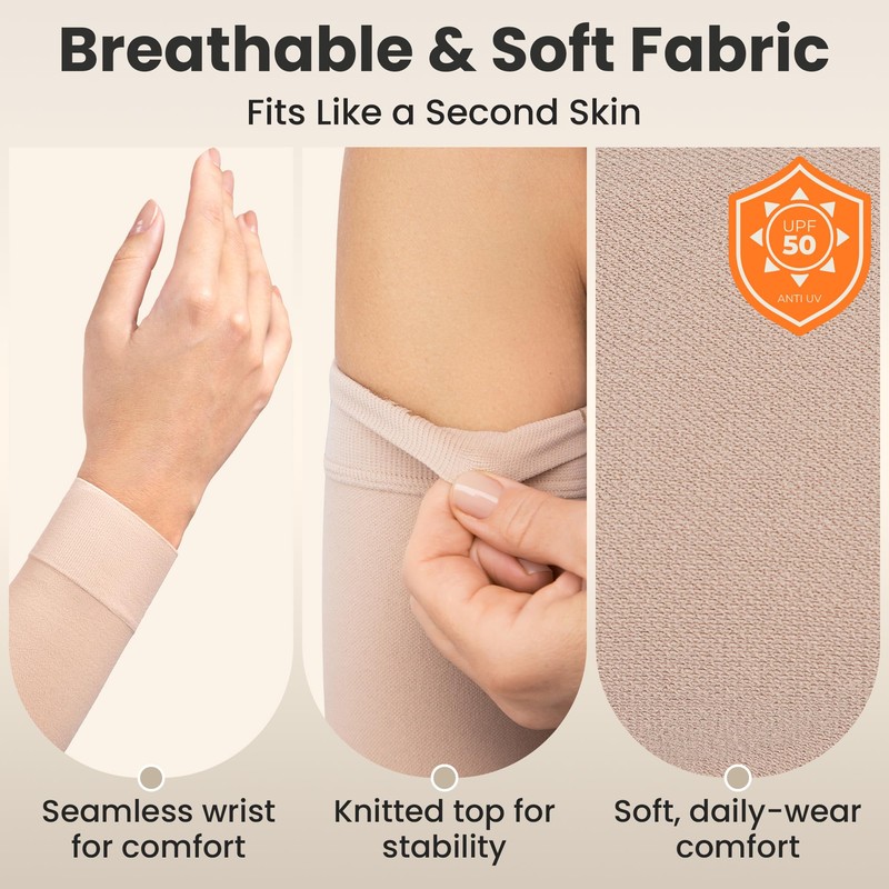 • Breathable & Soft: Made with soft, breathable, Oeko-Tex Certified fabric that is non-irritating, UV-protective, latex-free, and free from silicone dots, keeping your arm cool and comfortable all day