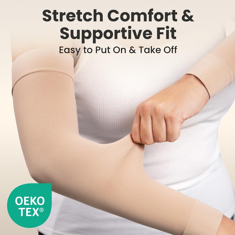 Compression Lymphedema Arm Sleeves for Women - 20-30 mmHg, Pack of 2, Beige, ...