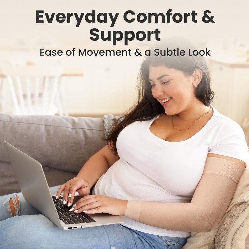 • Choose Your Compression: Available in Ccl-1 (15-20mmHg) for mild cases and Ccl-2 (20-30mmHg) graduated compression for moderate cases. Sleeves to cover arms are perfect for managing swelling, circulation, and comfort across different stages
