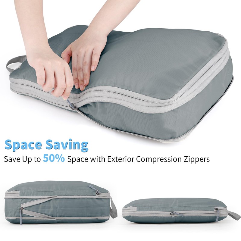 - 【Space Saving】The luggage organiser set adopt the exterior compression zippers to compressing the packing cubes,it can save up to 50% space.Save more space in your carry on luggage or travel backpack,and makes your luggage clean and neat while traveling.