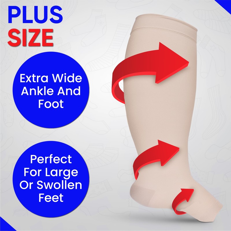 - ✅ WHAT DO I GET? High-quality, plus-size open-toe compression socks. (2 pairs) so no need to stress about washing or running out - a backup pair is always there. Find your perfect fit using the size guide.
