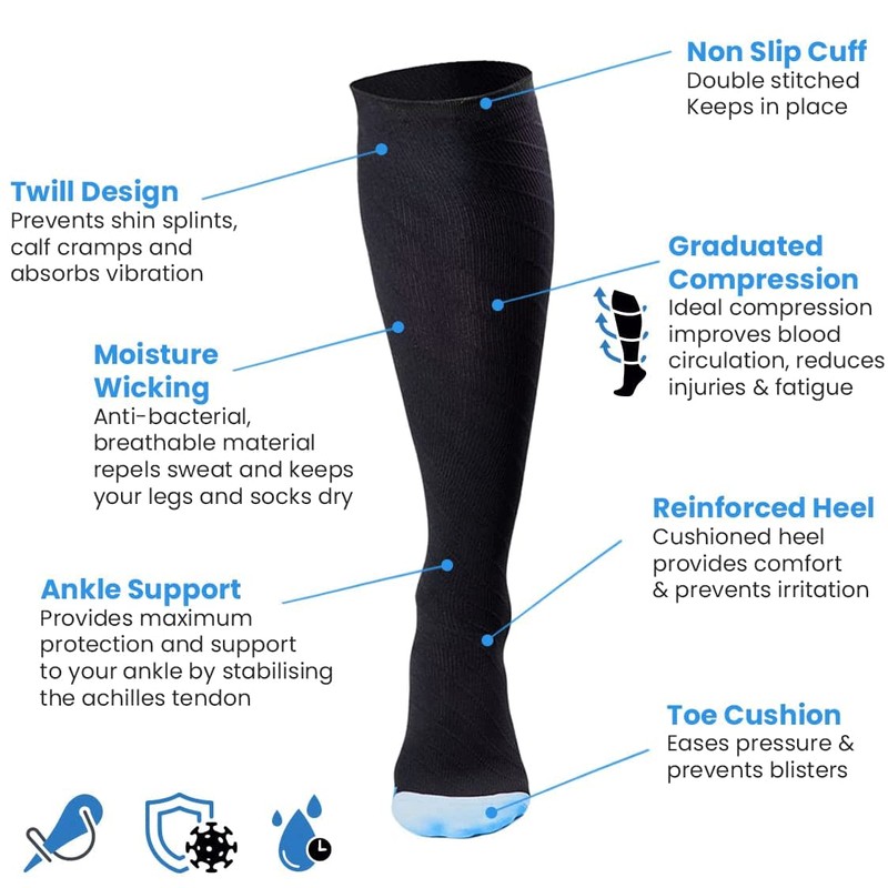 - WORKOUT IN STYLE:Designed with high quality Nylon Mix material. Better Blood Circulation-The strongest 20 - 30 mmHg compression in the ankle area will promote blood circulation and oxygen flow. Reduce the accumulation of lactic acid, reduce muscle fatigue during exercise.