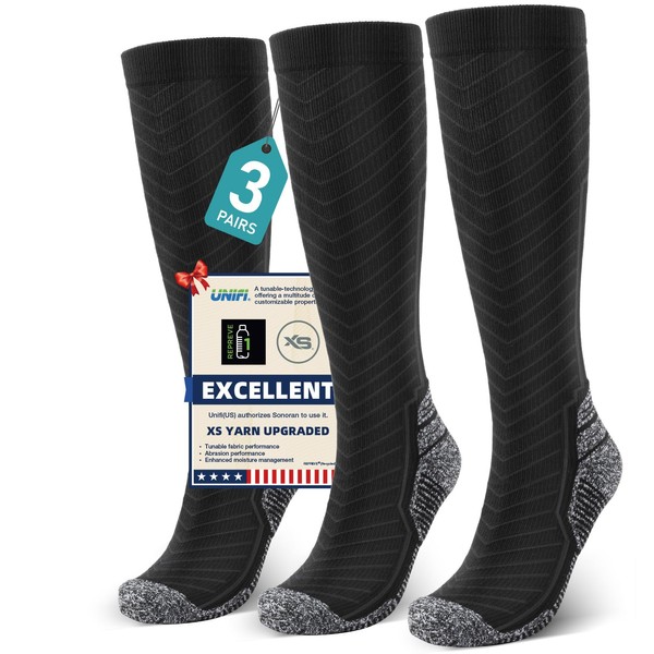 - XS Upgraded: Powered by innovative XS yarn of Unifi(US), its octagonal honeycomb structure boosts moisture-wicking by 40% and breathability by 35%. Experience rapid drying, targeted cushioning, seamless toes, muscle support, and Achilles protection—for blister-free comfort and professional performance across all activities.