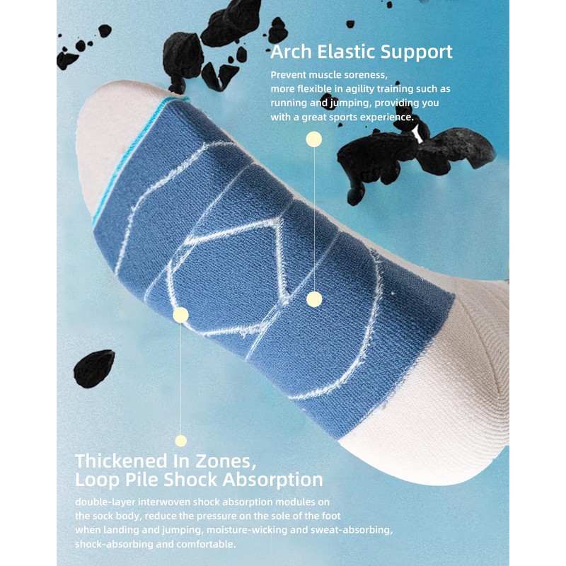- Cycling Socks: Double-layer interwoven shock absorption modules on the sock body, reduce the pressure on the sole of the foot when landing and jumping, moisture-wicking and sweat-absorbing, shock-absorbing and comfortable