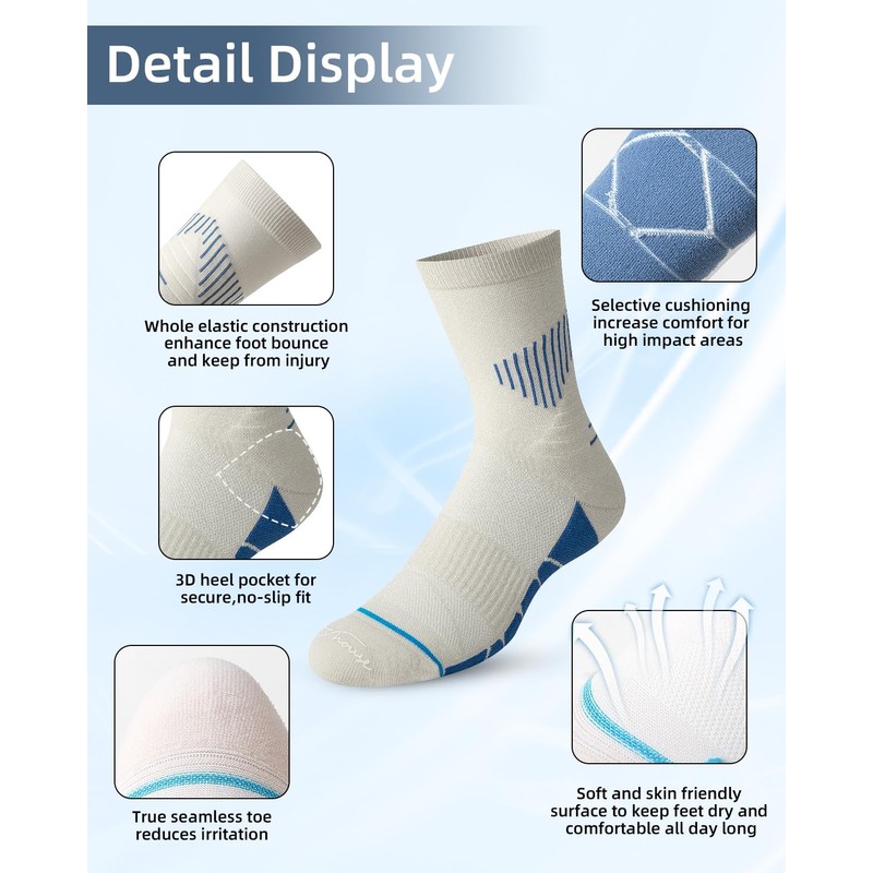 - Breathable Sport Socks: Premium nylon-spandex blend wicks sweat 3x faster than cotton, keeping feet dry in tough terrains; Mesh ventilation zones on instep prevent overheating during long climbs